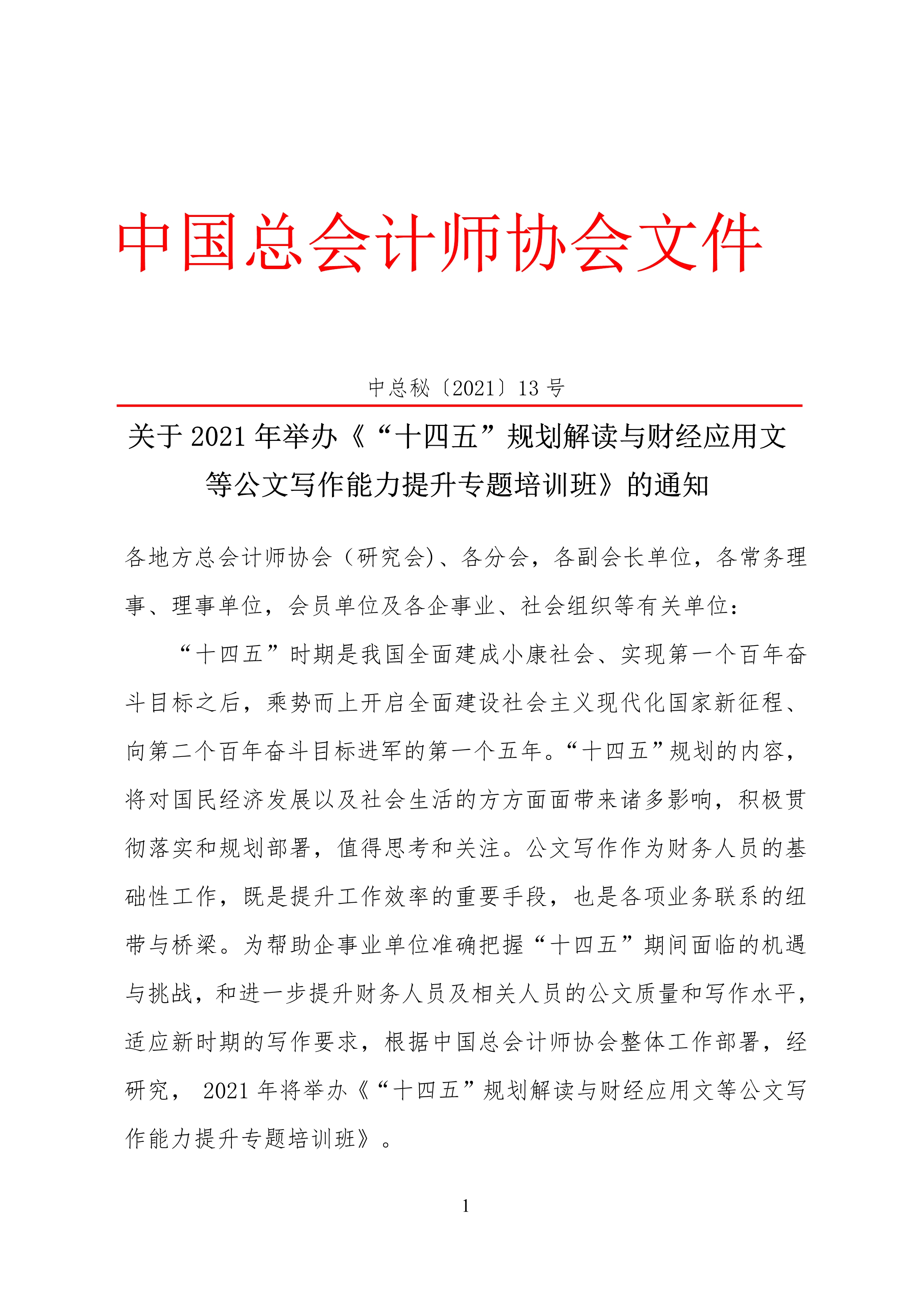 附件:中總秘[2021] 13號 關于2021年舉辦《“十四五”規劃解讀與財經應用文等公文寫作能力提升專題培訓班》的通知/upload/edit/file/20210220/20210220163807_59996.pdf