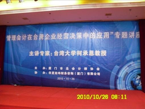 為了搭建廈門與臺灣兩地公司治理與會計的交流平臺,在ECFA時代更好地推動廈門企業高級管理人員和高級財會人才與臺灣同行的專業交流、合作,服務兩岸的經濟建設與發展,由廈門市總會計師協會主辦,華夏經緯財務咨詢(廈門)有限公司協辦,特邀臺灣大學著名會計教授、企業管理專家柯承恩博士主講的“管理會計在臺灣企業經營決策中的應用”專題講座昨天成功舉辦。