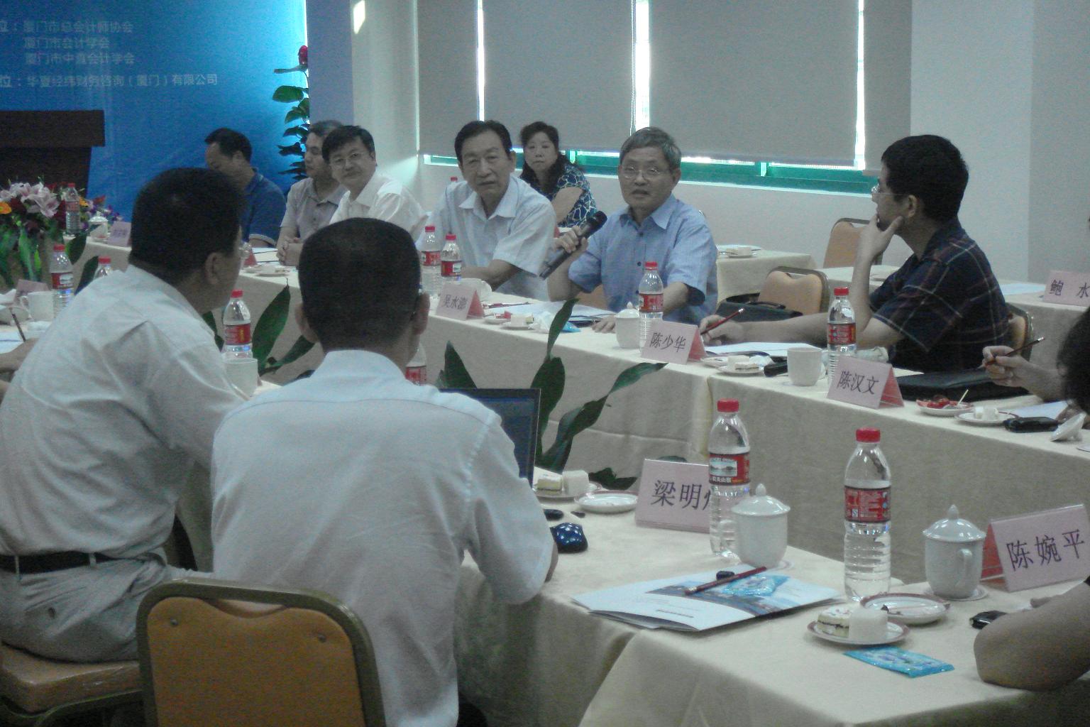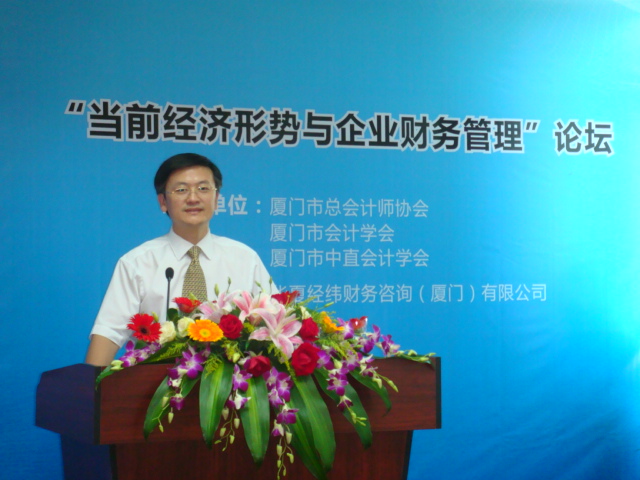 2011年8月18日下午,由廈門市總會計師協會、廈門市會計學會和廈門市中直會計學會聯合主辦、華夏經緯財務咨詢(廈門)有限公司協辦的題為“當前經濟形勢與企業財務管理”的主題論壇在廈門富興大廈B幢8樓華夏經緯會議室成功舉辦。參加論壇的有廈門市財政局領導,廈門市總會計師協會、廈門市會計學會、廈門市中直會計學會常務理事,廈門大學吳水澎、陳漢文、陳少華、傅元略等會計學資深教授、博導,美國管理會計師協會IMA中國代表李蔚,以及部分企業總會計師、財務總監等。